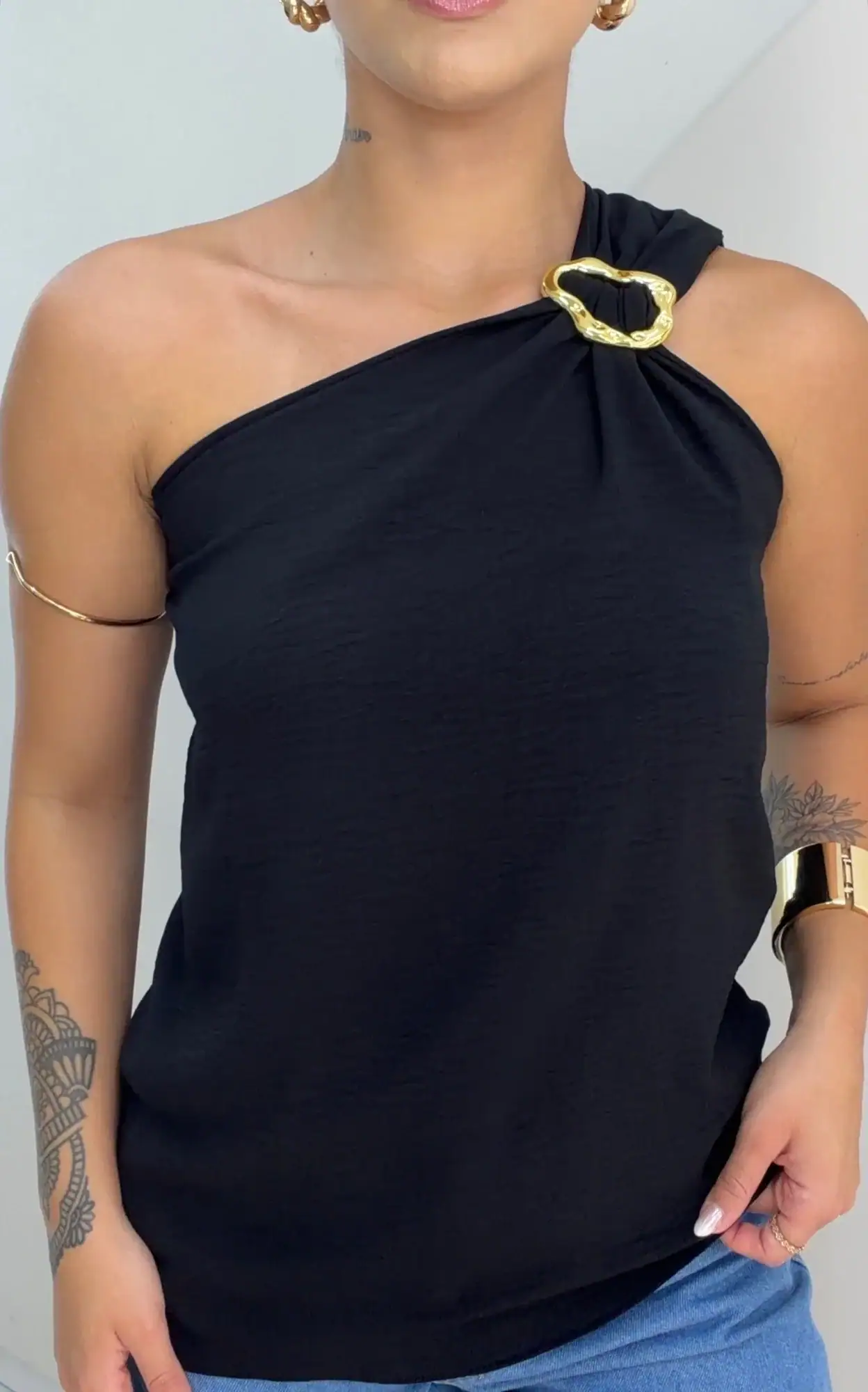 O grande charme fica por conta do detalhe de argola no ombro, que adiciona personalidade e deixa a produção ainda mais fashion. 💫