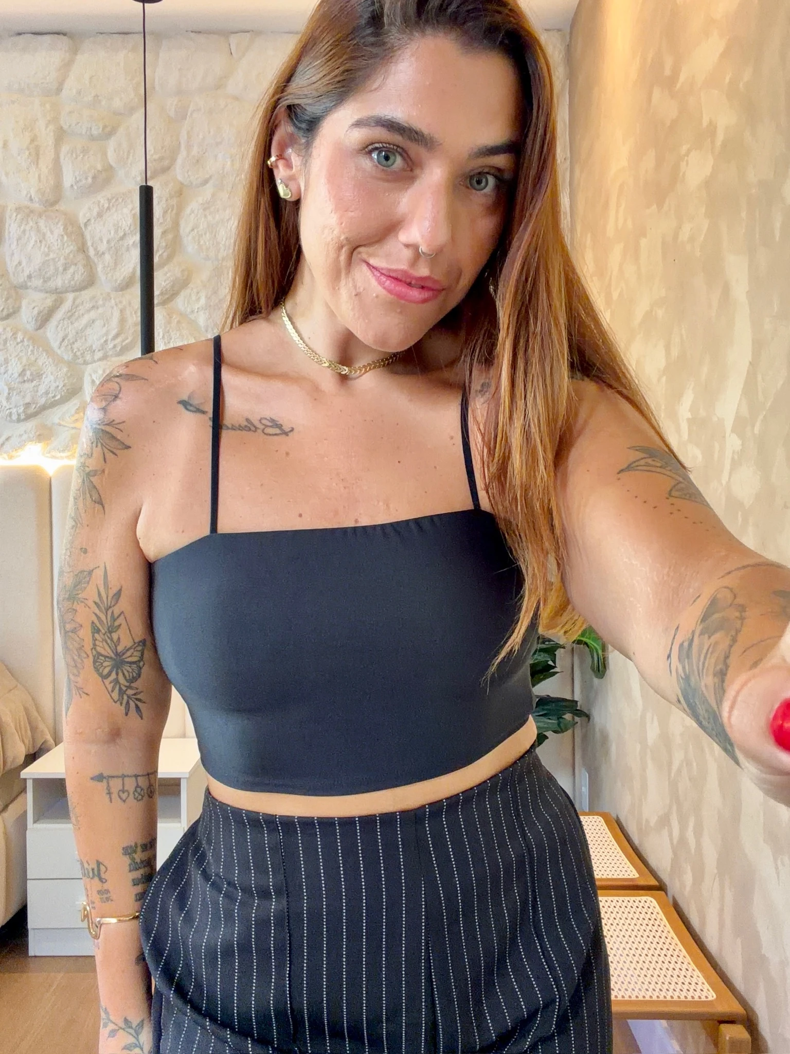 Cropped top com bojo e alcinha de elástico que une conforto, sustentação e versatilidade 🖤✨