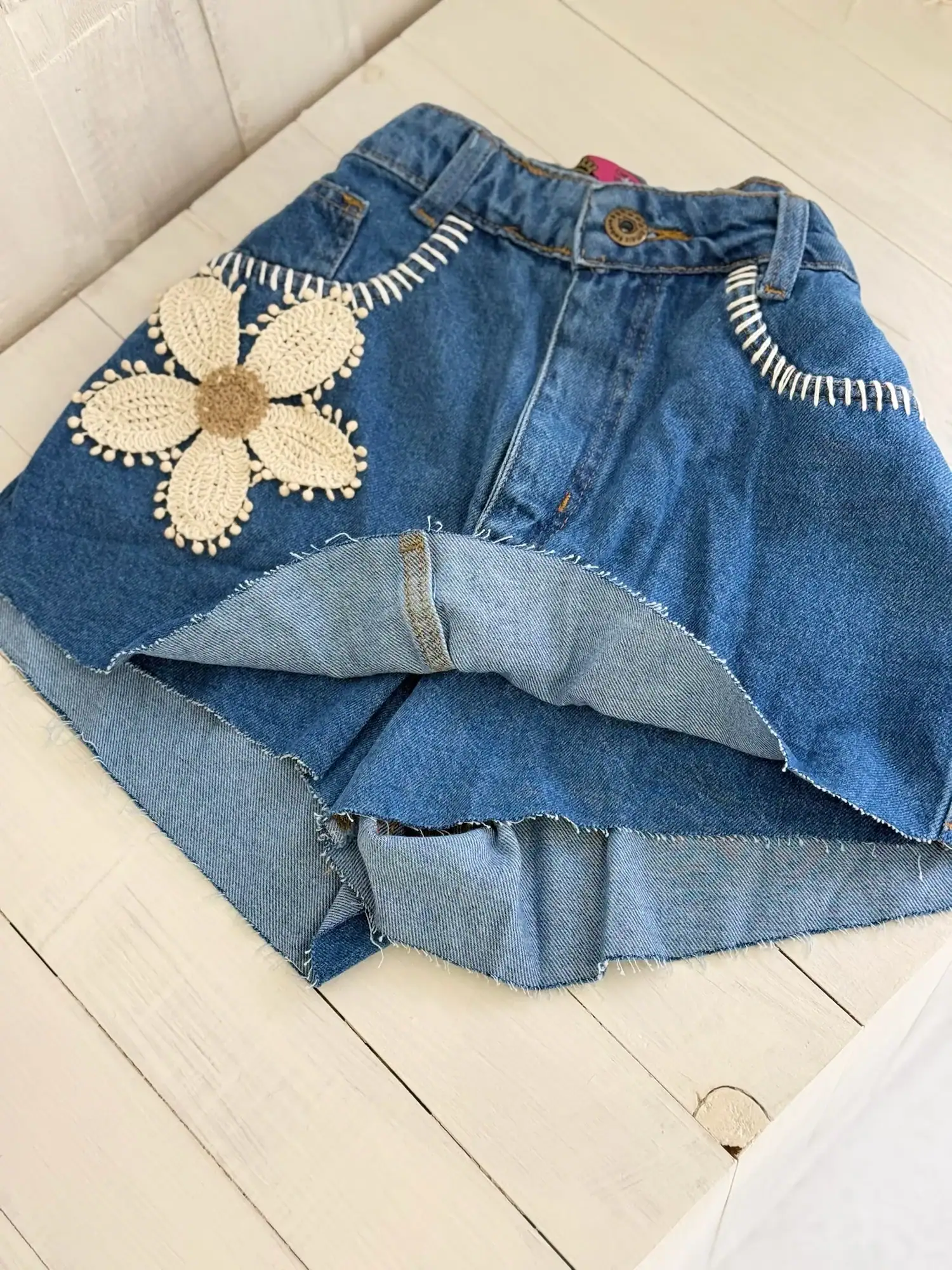 SHORT-SAIA JEANS MARI – BORDADO COM FLOR