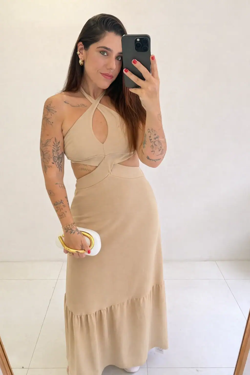 O vestido Andressa é aquela peça que une elegância e sensualidade na medida certa. Confeccionado no tecido duna, ele possui toque macio, caimento leve e fluido, valorizando a silhueta com muito conforto.