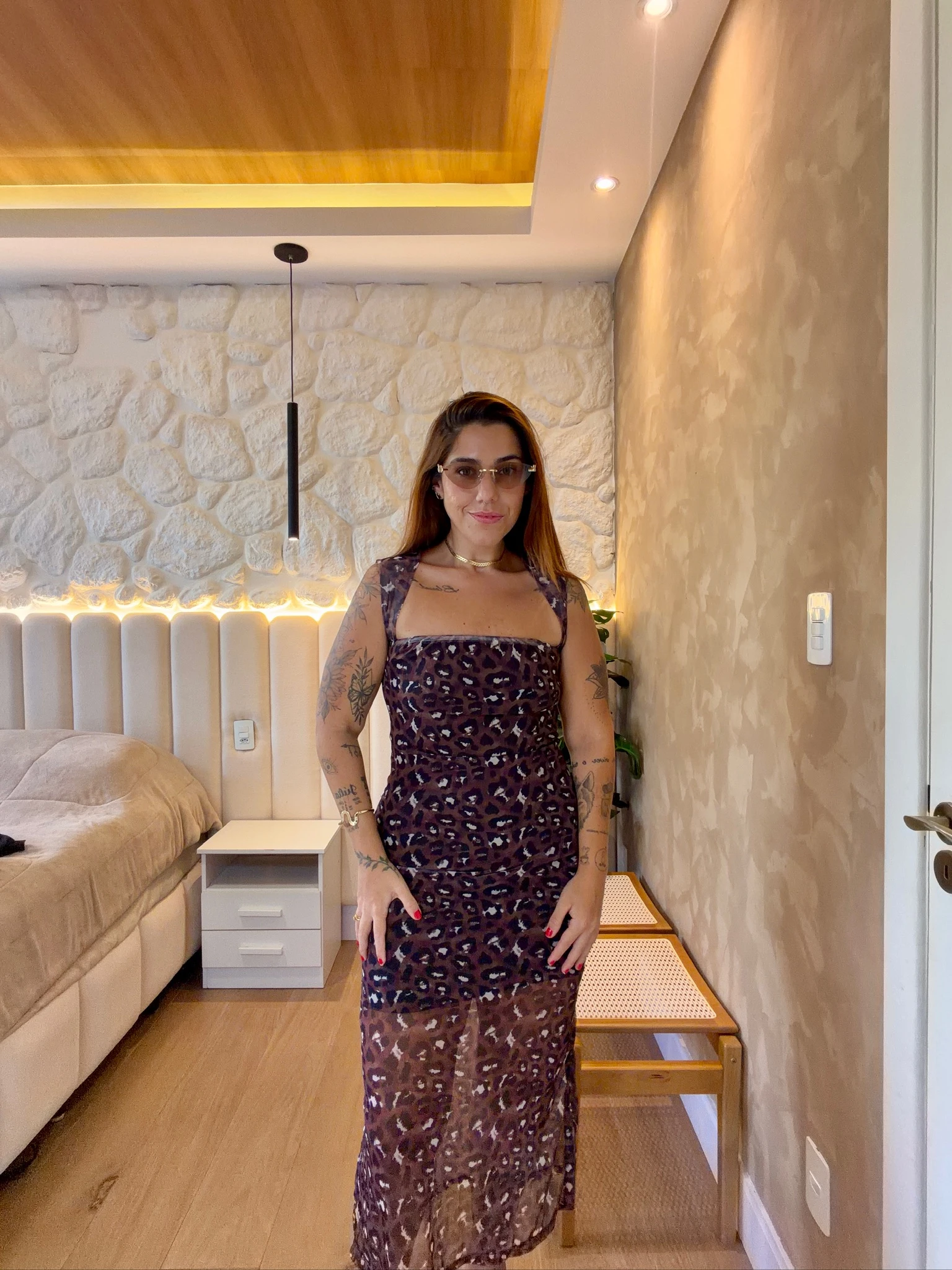 A estampa traz personalidade, enquanto o tule garante leveza, fluidez e um toque moderno à produção. Possui caimento confortável e modelagem que valoriza o corpo com delicadeza. 💫
