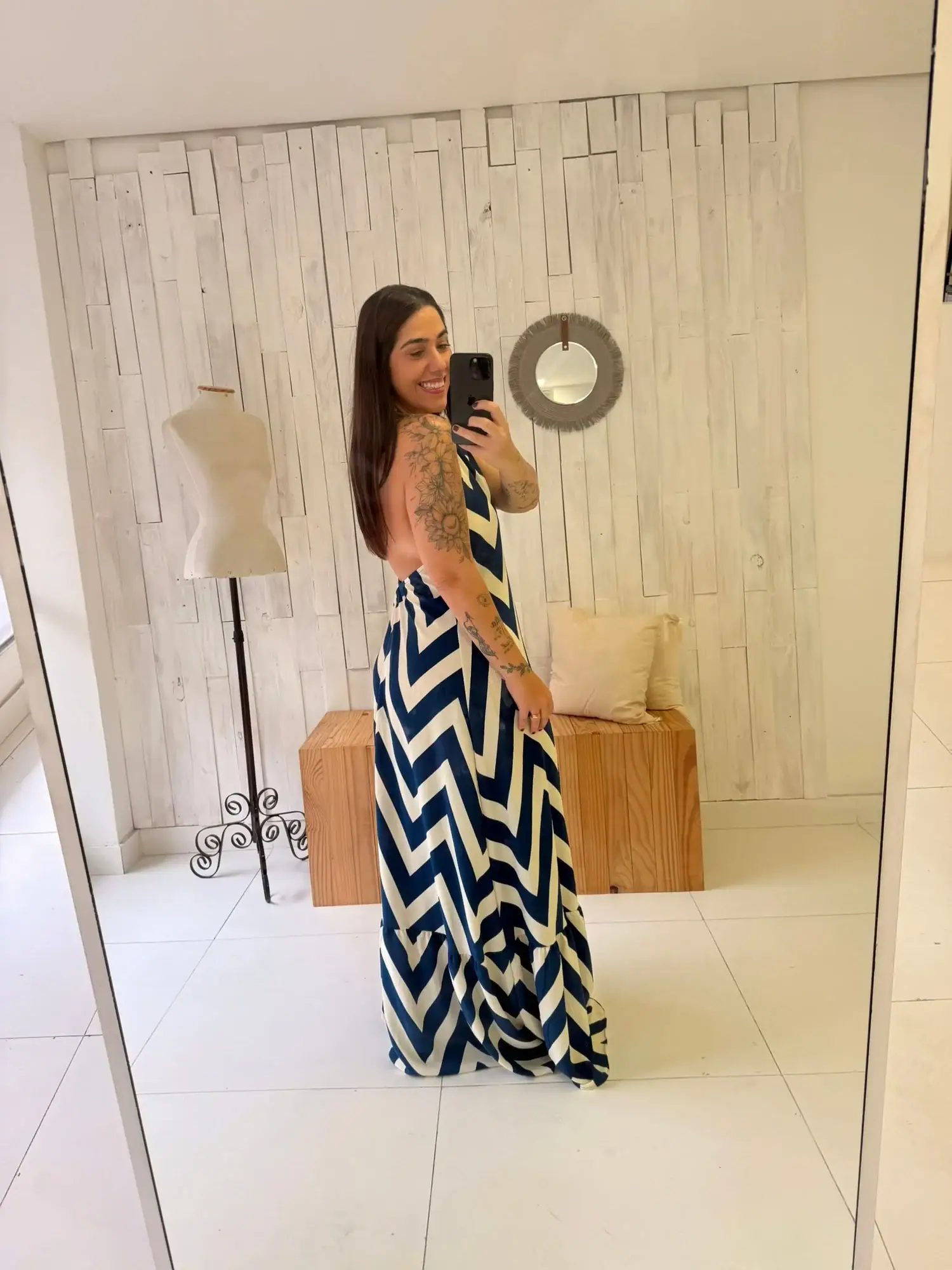 Nosso Vestido Joice em estampa zig zag é a escolha perfeita para quem ama um look marcante e sofisticado.